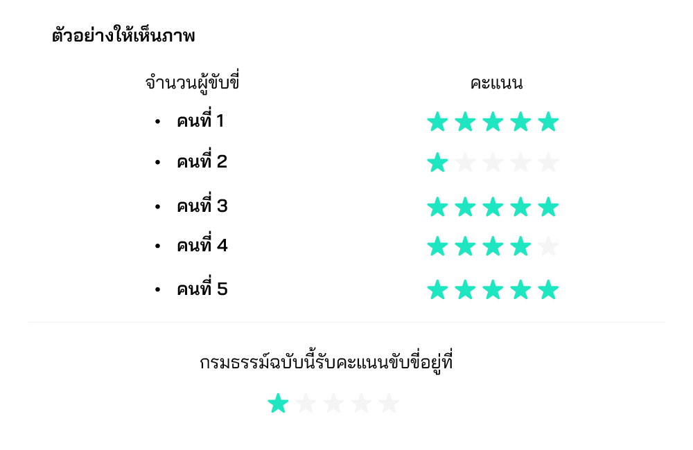 ระบบจะไม่พิจารณาเฉพาะผู้ขับขี่เพียงคนเดียว แต่จะพิจารณา ระดับพฤติกรรมการขับขี่ (Driver Behavior Level) ของ ผู้ขับขี่ทุกคนที่ถูกระบุไว้ในกรมธรรม์ โดยจะยึดจากระดับพฤติกรรมการขับขี่ของคนที่ได้คะแนนน้อยสุด