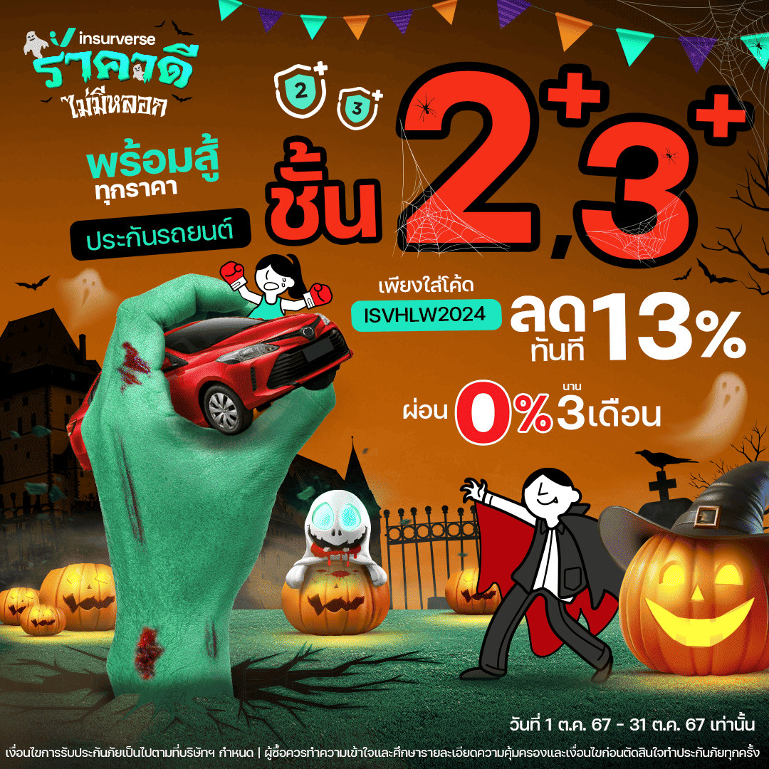 ชั้น 2+, 3+ กรอกโค้ดลดทันที 13% ซื้อตรง ถูกชัวร์ ไม่มีค่าคอม เช็คราคาเลย ! โปรโมชัน expand_more กรอกโค้ด ISVHLW2024 ก่อนชำระเงิน รับส่วนลดทันที 13% สำหรับซื้อประกันรถยนต์ภาคสมัครใจชั้น 2+, 3+ เงื่อนไขโปรโมชันและของรางวัล expand_more รับโค้ดส่วนลดทันที 13% เมื่อกรอกก่อนชำระเงิน สำหรับซื้อประกันรถยนต์ภาคสมัครใจชั้น 2+, 3+ หมายเหตุ expand_more เงื่อนไขการรับประกันภัยเป็นไปตามที่บริษัทฯ กำหนด ผู้ซื้อควรทำความเข้าใจและศึกษารายละเอียดความคุ้มครองและเงื่อนไขก่อนตัดสินใจทำประกันภัยทุกครั้ง อัตราส่วนลดดังกล่าวเป็นไปตามที่ คปภ. กำหนด อัตราส่วนลดนี้สำหรับประกันรถยนต์ภาคสมัครใจชั้น 2+, 3+ เท่านั้น สิทธิพิเศษ ไม่สามารถโอน, ขายสิทธิ์ให้ท่านอื่น เปลี่ยนแปลงเป็นเงินสด หรือส่วนลดอื่นๆ ได้ ระยะเวลาโปรโมชัน ตั้งแต่วันที่ 1 ตุลาคม – 31 ตุลาคม 2567 เท่านั้น