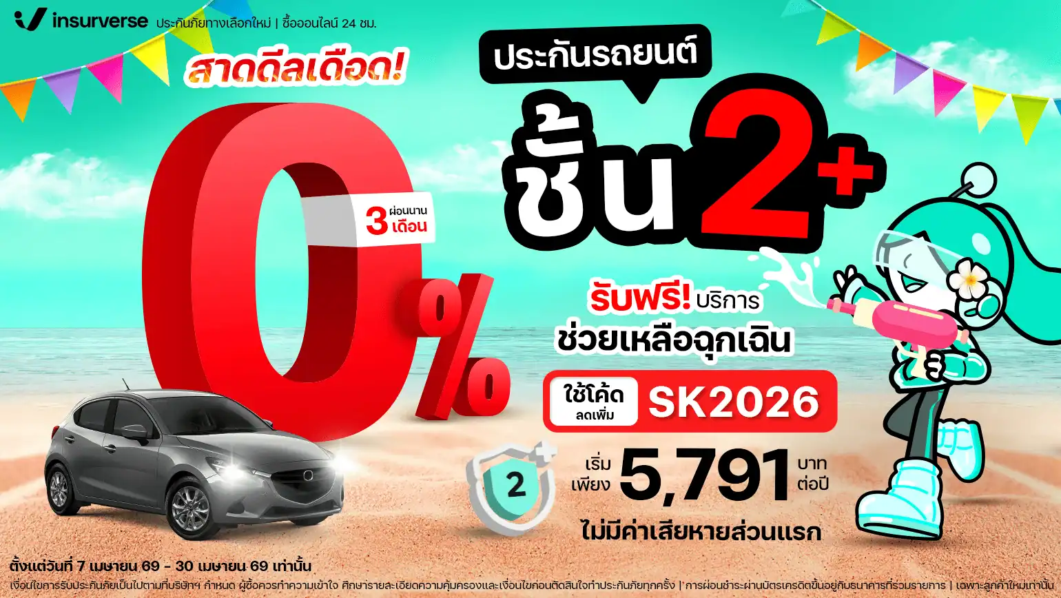 • สิทธิพิเศษนี้ มอบให้กับลูกค้าใหม่ที่ซื้อประกันภัยรถยนต์ภาคสมัครใจชั้น 2+ ผ่านช่องทาง www.insurverse.co.th ไม่สามารถใช้ร่วมกับโปรโมชันอื่นๆ หรือการต่ออายุประกันภัยของบริษัทฯ ได้